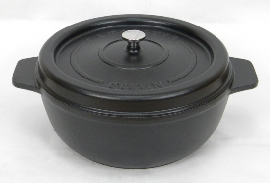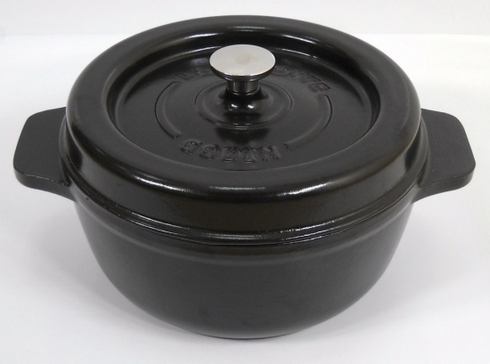 Oferujemy garnki żeliwne emaliowane okrągłe w kolorze czarnym (wnętrze czarne), Dostępne w następujących rozmiach;
