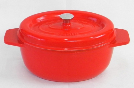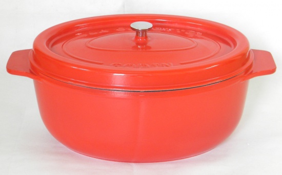 Oferujemy garnki żeliwne emaliowane owalne w kolorze pomarańczowym (wnętrze piaskowe), Dostępne w następujących rozmiach;