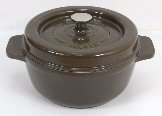 Oferujemy garnki żeliwne emaliowane okrągłe w kolorze brązowym (wnętrze piaskowe), Dostępne w następujących rozmiach;