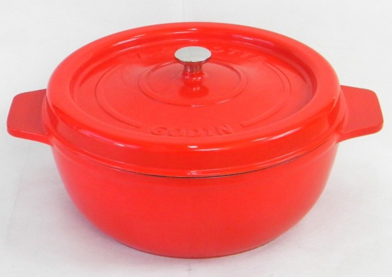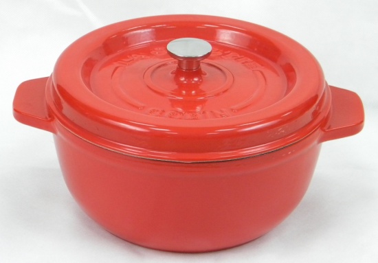 Oferujemy garnki żeliwne emaliowane okrągłe w kolorze pomarańczowym (wnętrze piaskowe), Dostępne w następujących rozmiach;