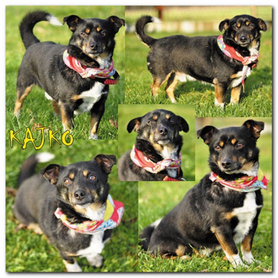 Kajko to ok. 3 letni mikrus w dosłownym tego słowa znaczeniu. To mały kajtek, waży 6 kg, niskopodłogowy, 30 cm w kłębie - jest naprawdę niewielki, więc spokojnie można go brać na ręce. Ma śliczne trikolorowe umaszczenie. To uosobienie delikatności i subtelności. Kajko w stosunku do człowieka jest przemiły, kontaktowy i kochany. To typ, którego ma ochotę się miziać i tłamsić bez opamiętania. Sensem jego życia jest siedzenie na kolanach opiekuna, mizianie się, tulenie - nie jest w tym jednak nachalny. To kompletnie niekłopotliwy i bezkonfliktowy psiak. Totalnie łagodny i spolegliwy, pilnuje się opiekuna i wraca na wołanie. Spokojny i grzeczny. Potrafi pięknie chodzić na smyczy i grzecznie znosi jazdę w samochodzie. Po jego zachowaniu można sądzić, że kiedyś mieszkał w domu. Nie ma zapędów niszczycielskich.