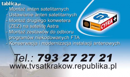 - montaz i regulacja anteny od 100zl plus koszty materialow