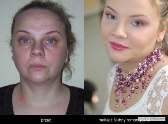 No dobrze – ale jednak mówimy „makijaż ślubny”. Co wiec to oznacza? Czy nie ma żadnych zasad podczas wykonywania makijażu ślubnego? Czy to taki sam makijaż jak każdy inny? Oczywiście, że nie. Specyfiką makijażu ślubnego jest to, że musi łączyć on w sobie elementy kilku różnych makijaży: musi być niezwykle trwały, ale jednocześnie dawać wrażenie lekkości. Musi świetnie wypadać na fotografiach, ale tez wyglądać naturalnie „na żywo”. Musi podkreślać urodę Panny Młodej w świetle zarówno dziennym, sztucznym, jak i w półmroku. Musi doskonale wyglądać zarówno z bliska, jak i z dużej odległości.